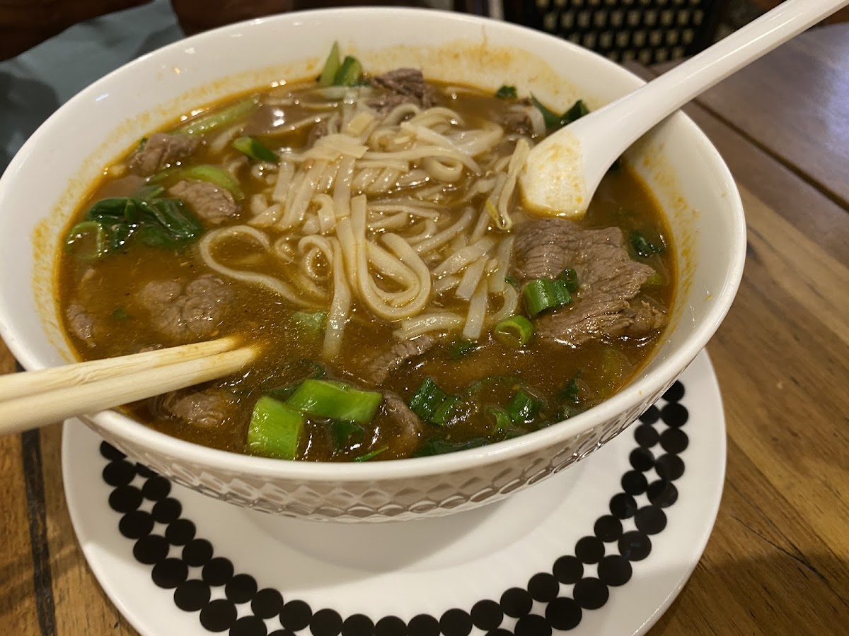 The menu balances traditional Thai dishes with casual café fare, with particular attention to options like Tom Yum Fried Rice, vegetarian and classic curry puffs, and hearty Beef Noodle Soup. Portions are generous, making it a practical choice for those looking to satisfy a substantial appetite mid-day. While the food tends to lean on the savory side (some have found certain dishes saltier than expected), freshness and authentic seasoning show through, especially in items like the fried rice and noodle soups.